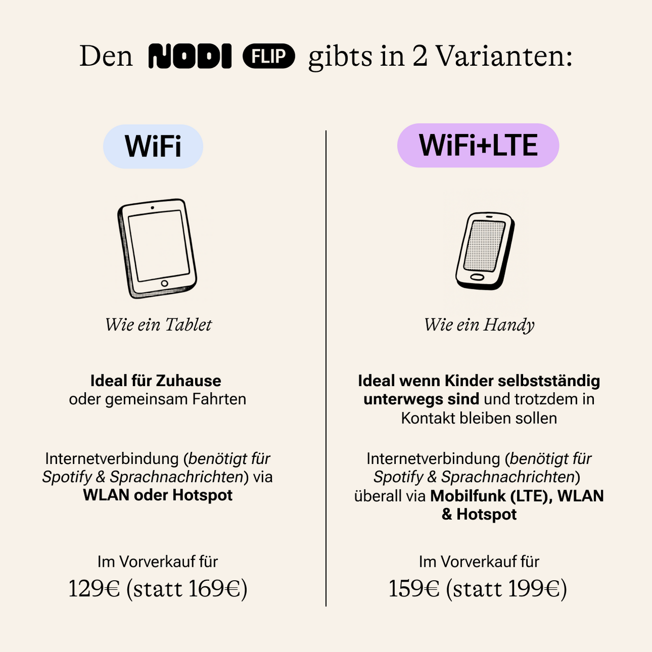 • WLAN-Version (funktioniert zuhause oder über Hotspot, mit Offline-Inhalten auch unterwegs).